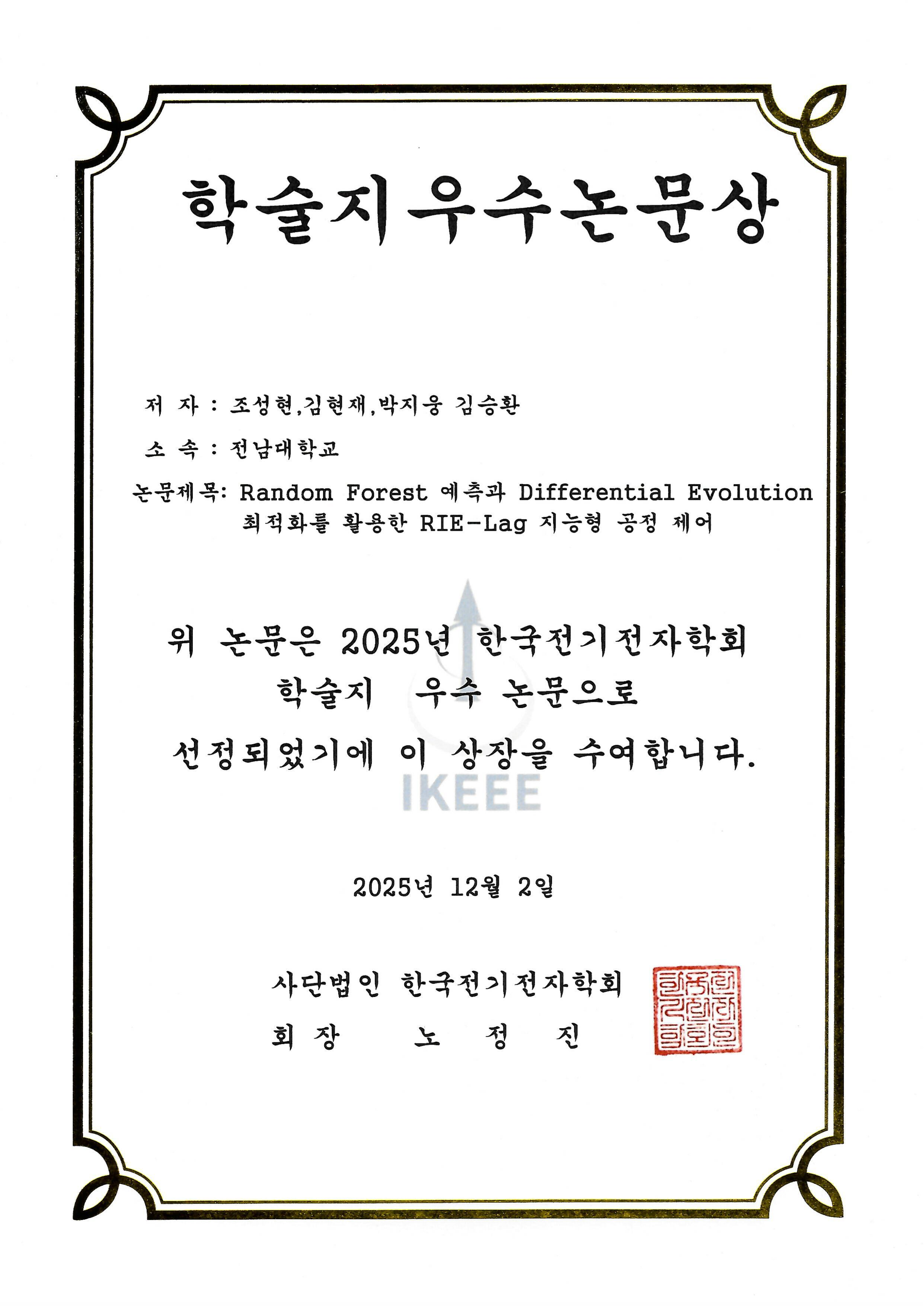 한국전기전자학회 학술지 우수 논문상 수상자로 선정되었습니다.